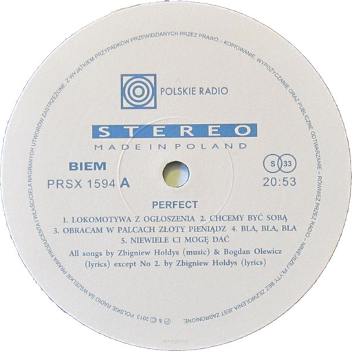 Reissue of the album PERFECT released in 1981 by Polskie Nagrania MUZA with the catalog number SX2114.